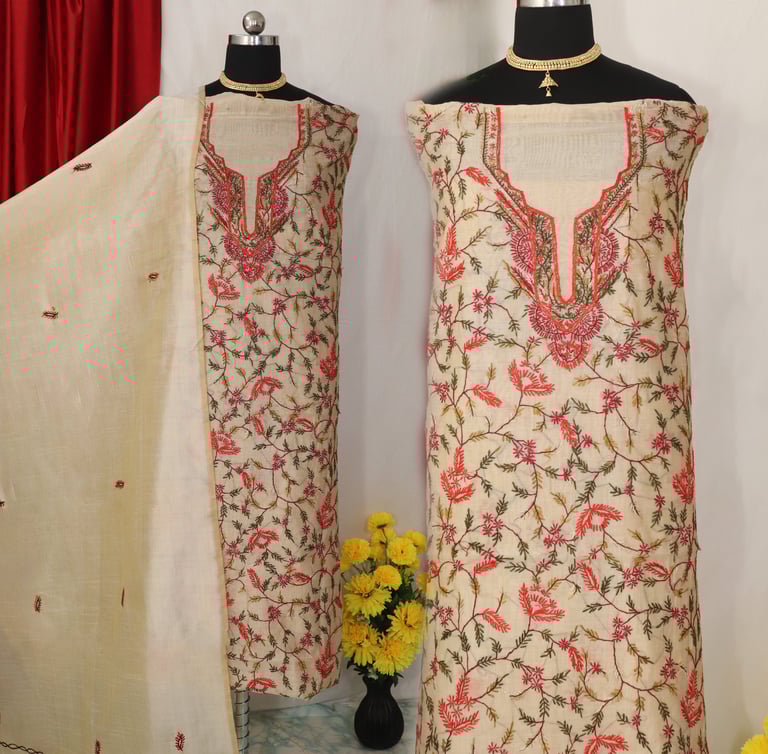 Handwoven chikon embroidery crafted by skilled women artisans with love and tradition.